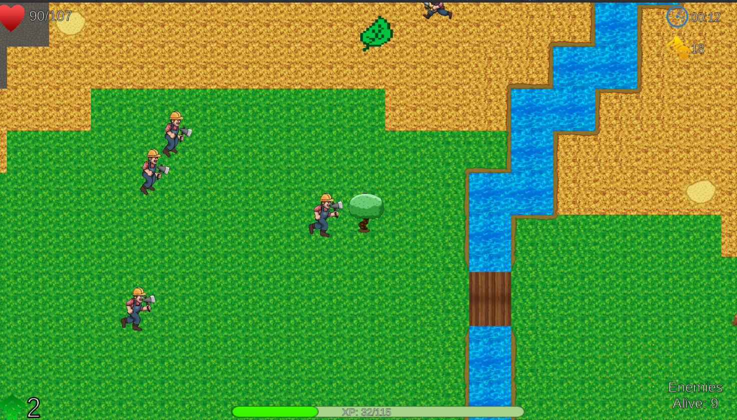 Defeat waves of lumberjacks and collect XP to level up.